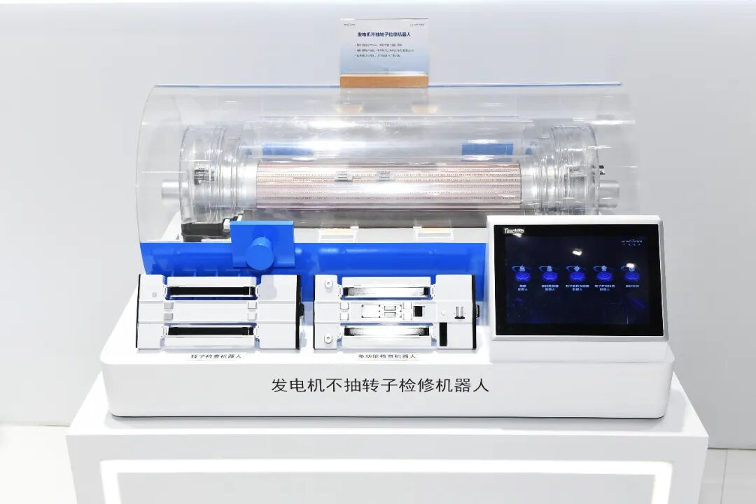展會上,明星裝備“悟空”機器人家族圈粉無數,8臺功能機器人無需抽出233噸重的發電機轉子,就能深入定轉子間隙做“精密體檢”,捕捉發絲級定子松動缺陷,30分鐘內完成修復,目前已覆蓋主流發電機機型,讓核電檢修邁入智能化新階段。