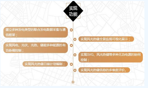 該項目包含風(fēng)電場、光伏電站、光熱電站、儲能電站、330千伏匯集站和國家級多能互補(bǔ)運(yùn)行控制中心6個部分。其中,光伏電站、光熱電站、儲能電站、330千伏匯集站和國家級多能互補(bǔ)運(yùn)行控制中心均位于格爾木市光伏發(fā)電園區(qū)內(nèi),風(fēng)電場位于格爾木市東的大格勒鄉(xiāng)境內(nèi)。在該項目中,風(fēng)電、光伏、光熱、儲能作為一個電站整體,通過采用聯(lián)合調(diào)度技術(shù),可實現(xiàn)以下功能: