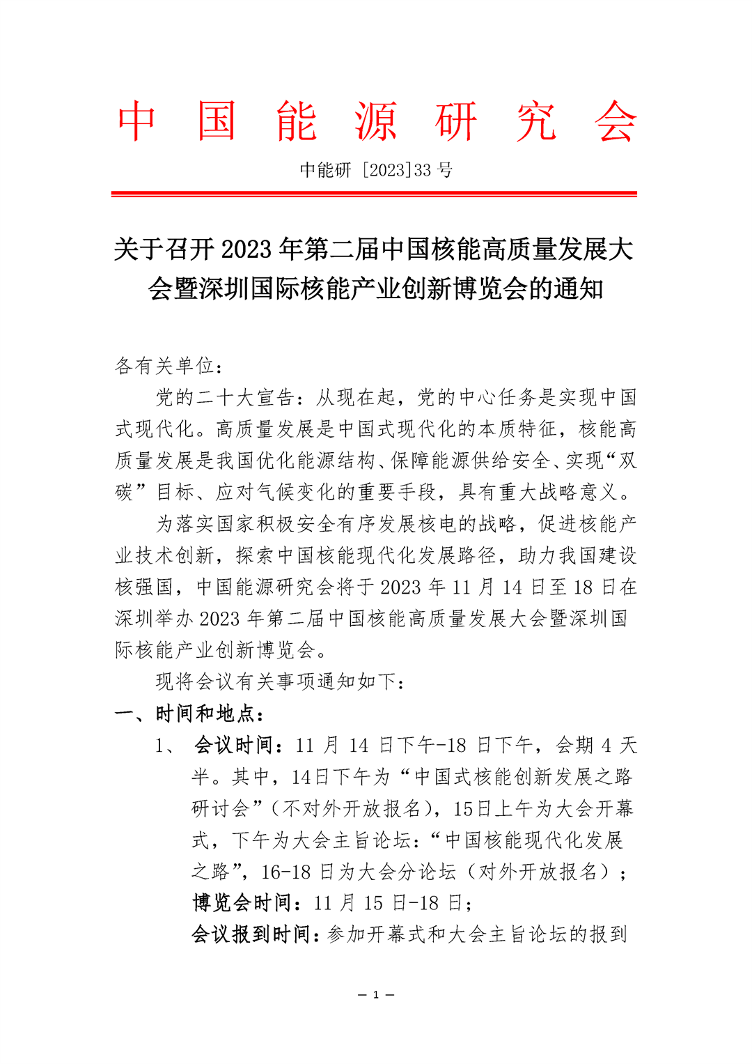 關于召開2023 年第二屆中國核能高質量發展大會暨深圳國際核能產業創新博覽會的通知